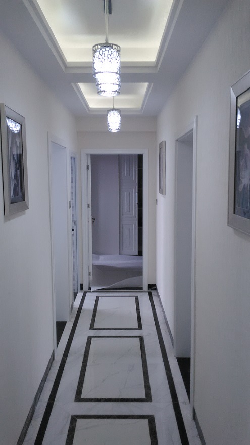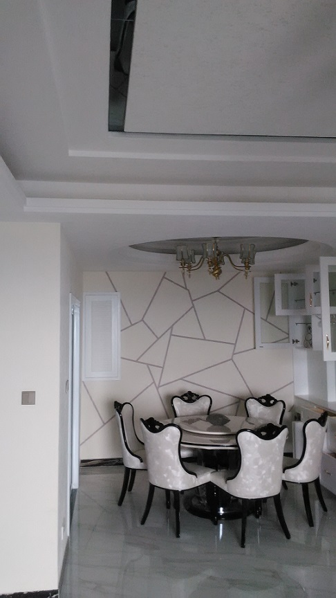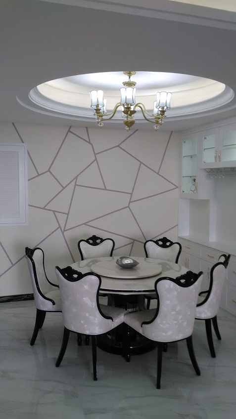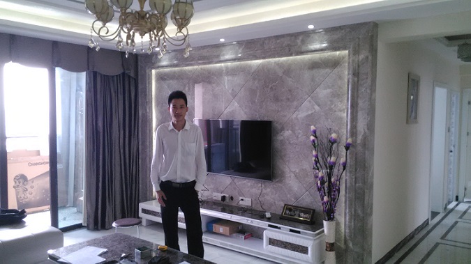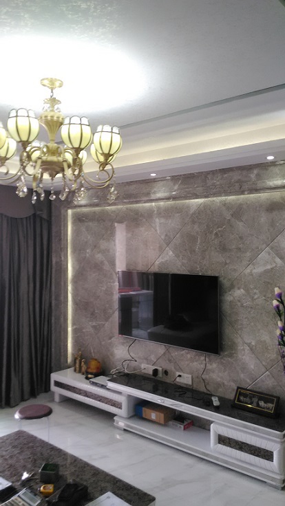 主要材质:天然大理石、通体砖、硅藻泥、免漆板,布艺软包、水性漆等